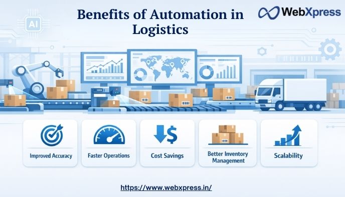 Automation in logistics brings significant advantages for businesses. It improves speed, accuracy, and efficiency while reducing costs and errors.
